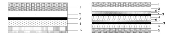 1-保护覆土; 2-保护垫; 3-土工膜; 4-黏土或沥青混凝土; 5-地基